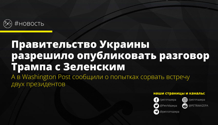 Правительство Украины дало разрешение на публикацию стенограммы разговора президента США Дональда Трампа и президента Украины Владимира Зеленского на фоне скандала с делом Джо Байдена и предстоящими выборами. А издание The Washington Post сообщило о попытках сорвать встречу Зеленского с Трампом, из опасения что она будет сосредоточена не на украинско-американских отношениях, а на деле Байдена.