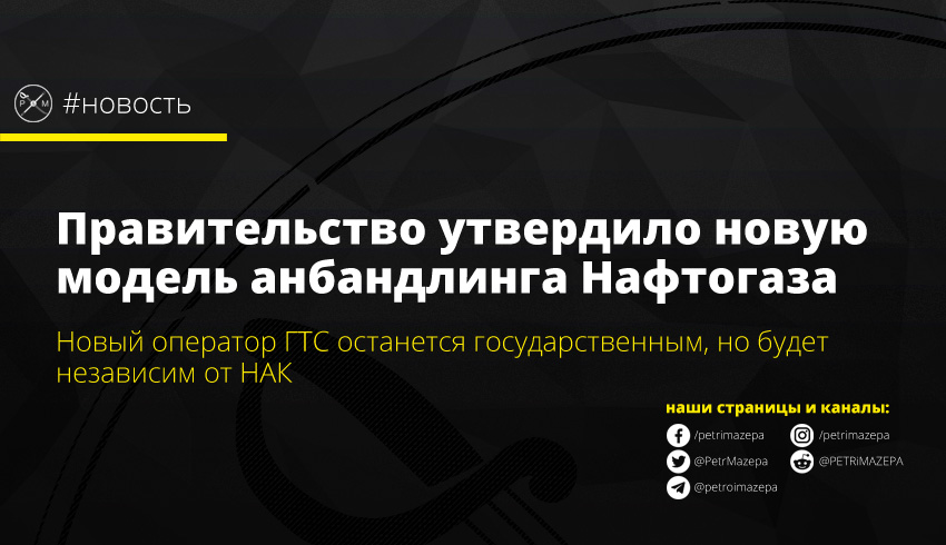 Кабинет министров Украины (Кабмин) на заседании в среду принял новое постановление об анбандлинге НАК «Нафтогаз України», что позволяет завершить выделение независимого оператора ГТС в январе 2020 года. После завершения андбандлинга деятельность по транспортировке газа будет полностью отделена от деятельности по добыче и поставкам газа.