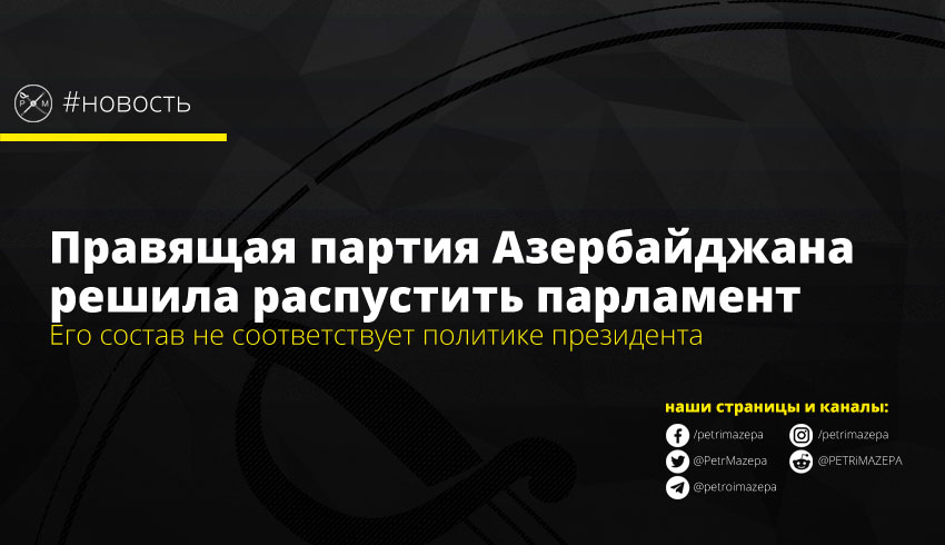 Политсовет правящей партии «Ени Азербайджан» провел экстренное заседание, на котором принял решение о роспуске парламента, Милли Меджлиса. Обосновано решение было тем, что нынешний состав парламента якобы не соответствует политике, проводимой главой государства, а также отстает от осуществляемых в стране реформ.