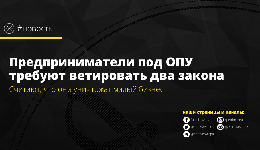 Среди прочего, представители малого бизнеса акцентируют внимание на том, что эти законы предусматривают введение кассовых аппаратов даже в маленьких магазинах, а все чеки надо будет направлять в налоговую и платить с каждого чека налог, а если сумма за год будет выше 300 тысяч грн, то надо будет уже платить налоги как большой бизнес (сейчас у малого бизнеса фиксированный налог – ред.).