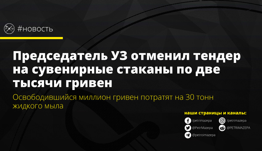Председатель правления АО «Укрзалізниця» Евгений Кравцов сообщил, что приказал отменить закупку сувенирных подстаканников с логотипом предприятия на сумму более 1 млн грн. Потратить данную сумму решили на более адекватные цели – например, закупку жидкого мыла.