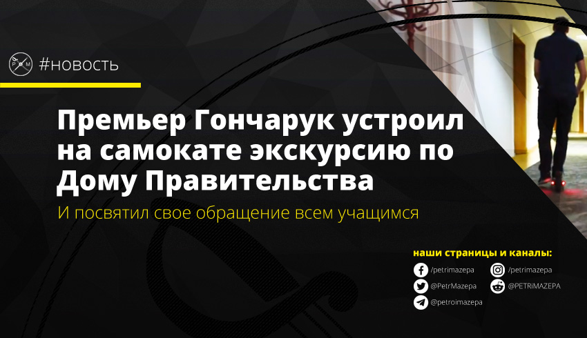 Премьер Гончарук устроил на самокате экскурсию по Дому Правительства