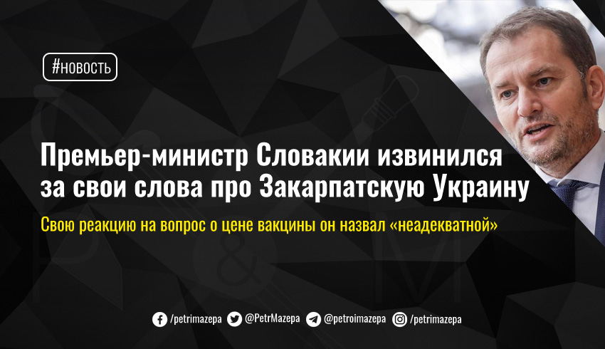Премьер-министр Словакии Игорь Матович извинился перед каждым украинцем за «неудачную шутку» про «обмен» украинского Закарпатья на вакцину от коронавируса из РФ.