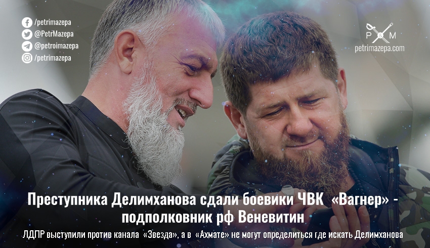 В России продолжается история с убийством или ранением близкого к Кадырову преступника и депутата Госдумы России Адама Делимханова. Экс-командир 72-й бригады, подполковник Веневитин заявил, что вся эта история — это месть Кадырову от Пригожина. Госдума и ЛДПР выступили против телеканала министерства обороны России «Звезда», и фактически обвинили тот в фейках, а командир «Ахмата» то заявил, что Делимханов вообще в Чечне, то что ему поступил приказ искать его на оккупированных территориях.