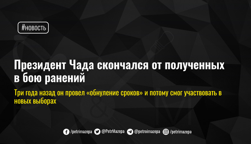 Президент Чада Идрисс Деби Итно умер от ранений, полученных во время боевых действий.
