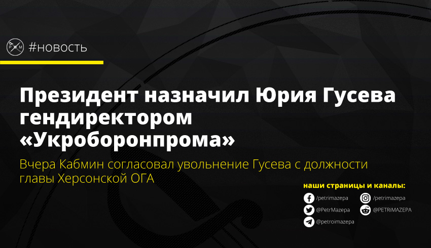 «Назначить Гусева Юрия Вениаминовича генеральным директором Государственного концерна "Укроборонпром"», - сказано в указе №532/2020, который обнародован на президента 3 декабря.