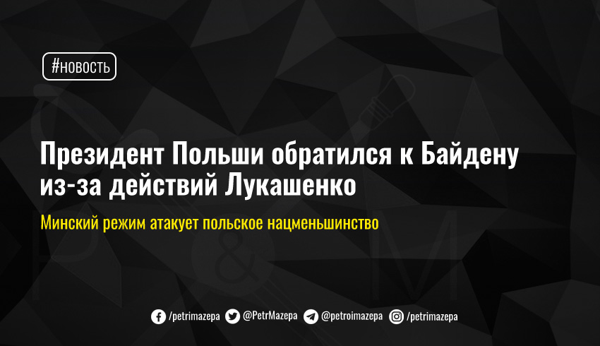 Президент Польши Анджей Дуда написал письмо президенту США Джо Байдену из-за притеснений польского нацменьшинства в Беларуси.