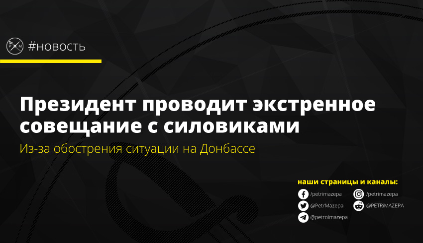 В Офисе президента Украины под председательством Владимира Зеленского проходит совещание в связи с ситуацией на Донбассе. А именно – нарушением незаконными вооруженными формированиями перемирия и гибелью четырех украинских военных в районе Павлополя под Мариуполем.