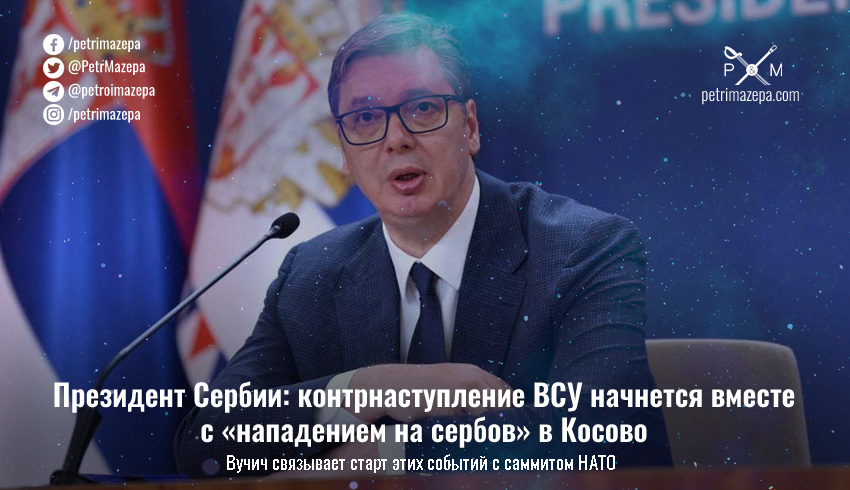 Президент Сербии Александар Вучич считает, что до саммита в Вильнюсе 12 июля украинская армия начнет масштабное контрнаступление, чтобы на саммите можно было продемонстрировать первые большие результаты. И именно так, по его мнению, поступят и в Косово, но нападать планируют якобы на сербов.