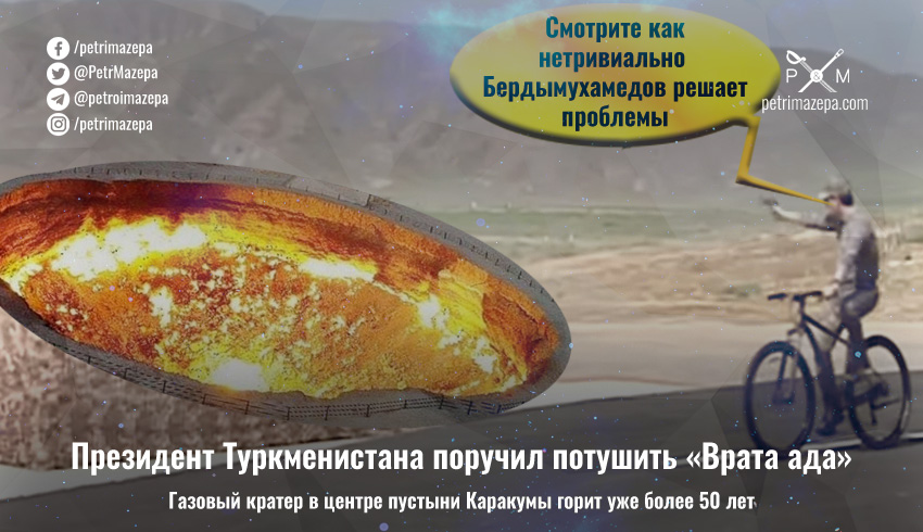 Президент Туркменистана Гурбангулы Бердымухамедов на состоявшемся сегодня заседании правительства дал задание найти решение по тушению горящего газового кратера в Дарвазе, который в народе называют «Врата ада». Он появился еще в 1971 году из-за действий советских геологов.