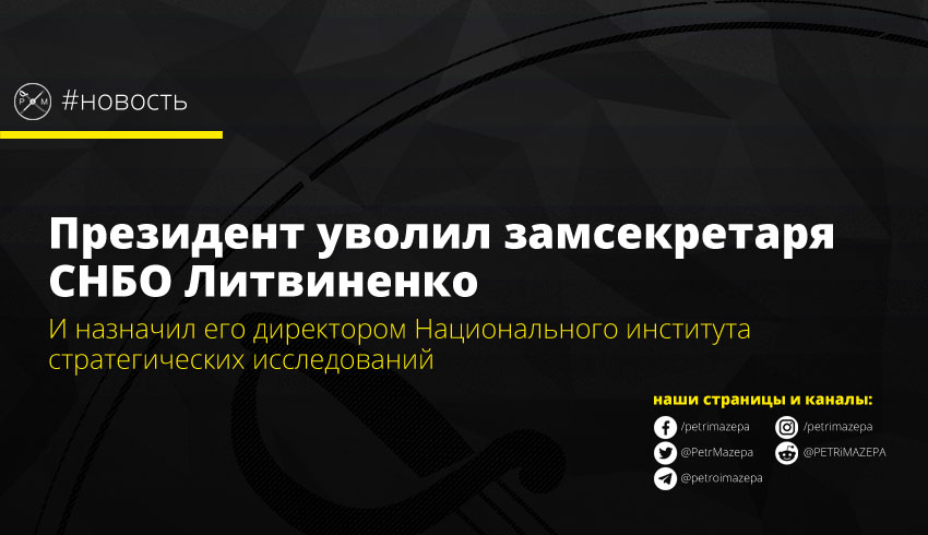 Президент Украины Владимир Зеленский уволил Александра Литвиненко с должности замсекретаря СНБО, и назначил его главой Национального института стратегических исследований (НИСИ). Также приказом президента Литвиненко обязывают разработать стратегию реформирования НИСИ, предполагающую сокращение численности сотрудников.