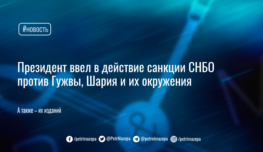 - 20 августа на заседании СНБО были введены санкции против издания «Страна», Игоря Гужвы и его окружения, а также – против Анатолия Шария и Андрея Деркача.
