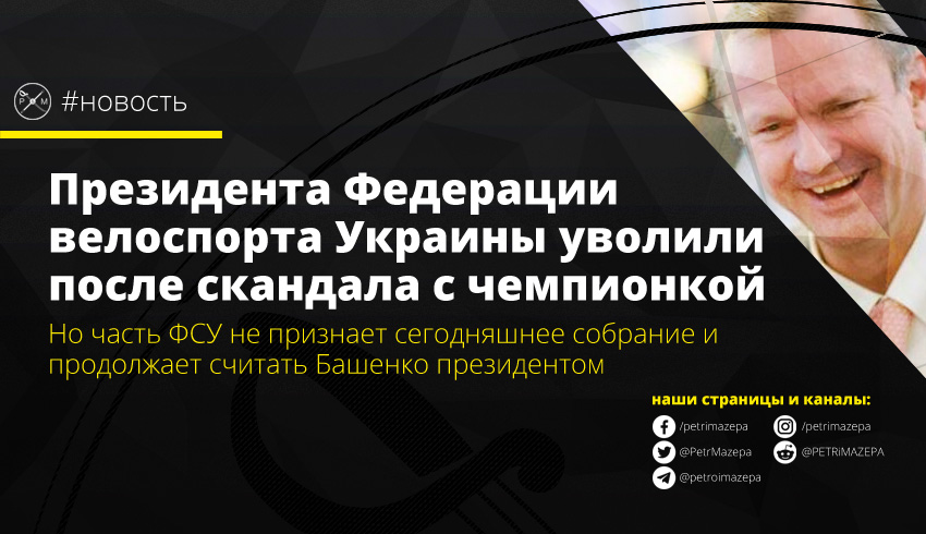 Юрист Юрий Юрченко сообщил, что Башенко был уволен по итогам внеочередной конференции Федерации велосипедного спорта Украины, которая состоялась сегодня, 20 августа.