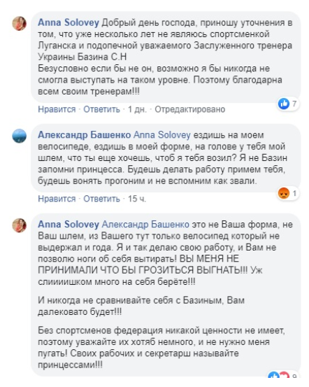 Уже почти два месяца продолжается история скандала с президентом Федерации велоспорта Украины Александром Башенко и чемпионки Европейских игр Анны Соловей. Во время дискуссии в Facebook Башенко сказал Соловей «не вонять». Сегодня появилась информация о том, что Башенко смогли уволить на внеочередном собрании Федерации.