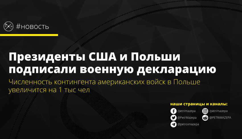 Согласно тексту документа, Штаты увеличат военное присутствие в Польше, сообщает «Радио Свобода». Военная декларация предусматривает расширение американского военного контингента в стране с 4500 до 5500 военных. Они будут находится на территории Польши на ротационной основе.