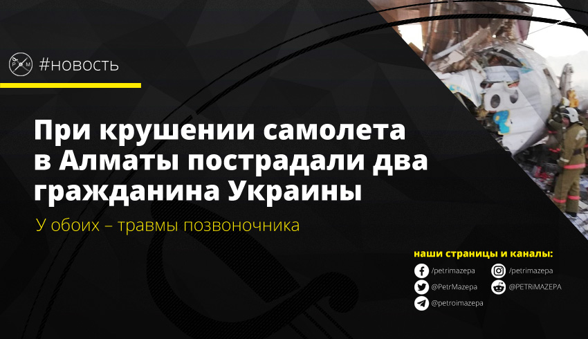 Пока известно, что в «Центральную городскую клиническую больницу» доставили двух украинцев. Сон Яна Владимировна 1990 года рождения и Сон Юрий Владимирович 1991 года рождения были госпитализированы с одинаковым диагнозом - компрессионные переломы тел позвонков без нарушения проводимости спинного мозга, сообщает Liter.kz.