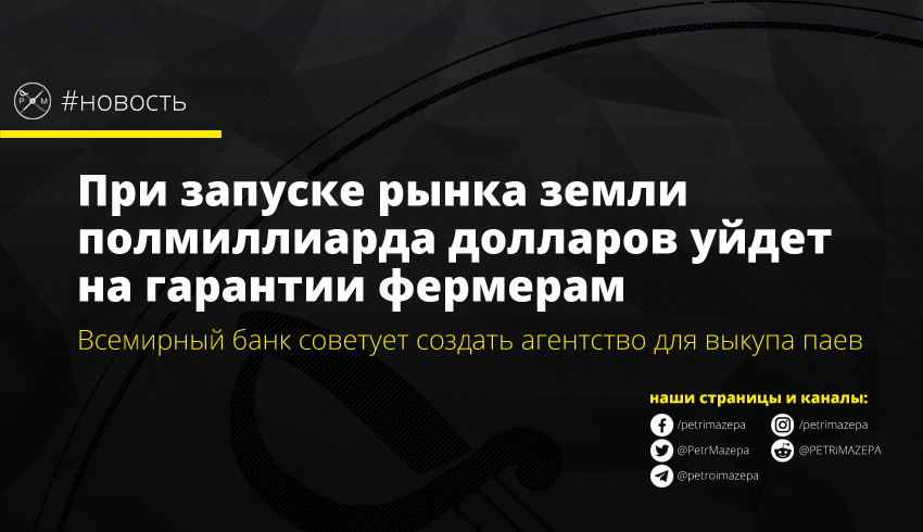 Всемирный банк предлагает украинскому правительству создать нейтральное агентство, которое будет заниматься гарантированием затрат фермеров на покупку земли.