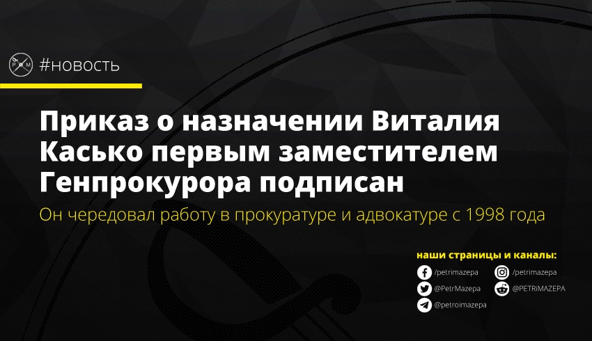 Генеральный прокурор Руслан Рябошапка, как и анонсировал, подписал приказ о назначении Виталия Касько первым заместителем Генерального прокурора.