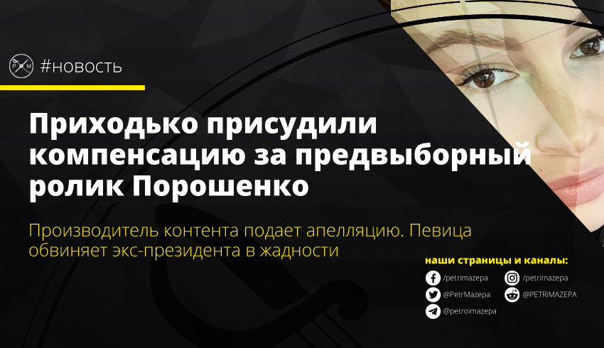 В Едином реестре судебных решений есть информация о том, что Анастасия Приходько выиграла дело, ответчиком в котором является не АП и не некая «команда Порошенко», а вполне конкретная компания, занимавшаяся производством ролика – «ТОВ Медиа Комьюникейшенс Груп». А сумма моральной компенсации составляет 268 940 грн. и 1 копейка. Плюс – компенсация судебных издержек Приходько в размере 3394 грн. 20 коп. А опубликовано это решение было еще 17 мая 2019 года, пишет «Детектор Медиа». Изначально певица просила в два раза большую сумму.