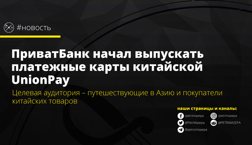 ПриватБанк начал выпускать платежные карты китайской UnionPay