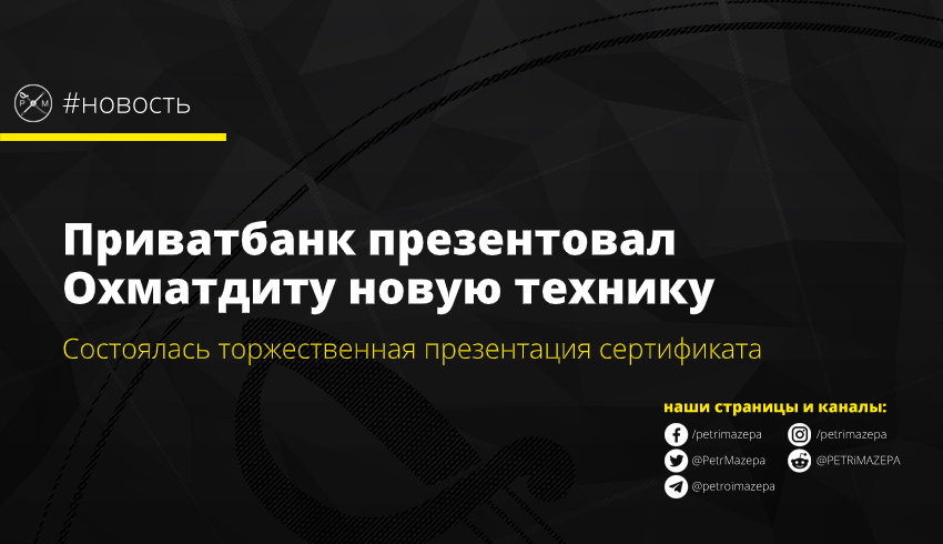В национальной детской специализированной больнице «Охматдит» появилось новое оборудование - многофункциональная центрифуга 5804 RG в комплекте с бакет-ротором A-2-DWP и комплектом адаптеров для ПЛР-планшетов. Сегодня же, 3 сентября, состоялось торжественное вручение сертификата в рамках программы благотворительного фонда «Помогать просто» от ПриватБанка.