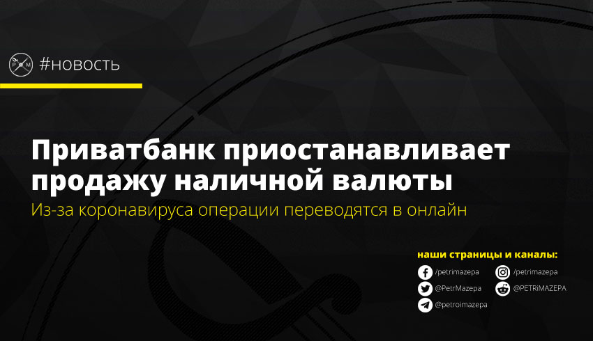 С сегодняшнего дня Приватбанк приостанавливает операции продажи и покупки валюты в отделениях – теперь валютообменные операции будут доступны только онлайн и через терминалы самообслуживания, ради безопасности клиентов.