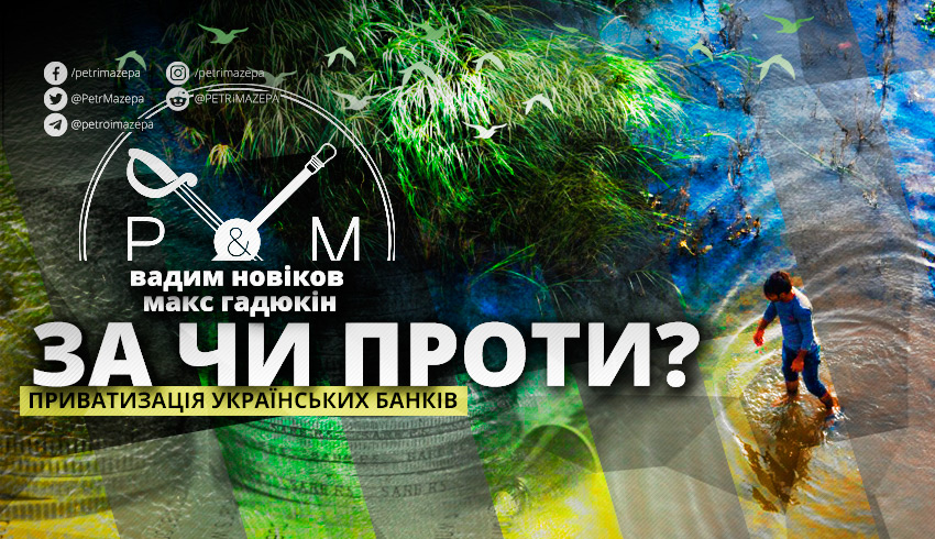 - Новіков. Коли приватизація банків – помилкове рішення. Приклади афер із нині державним банком, сумніви в доречності компліментів на адресу приватних фінансових установ. Врешті-решт, контролювати їх ми не зовсім навчились.