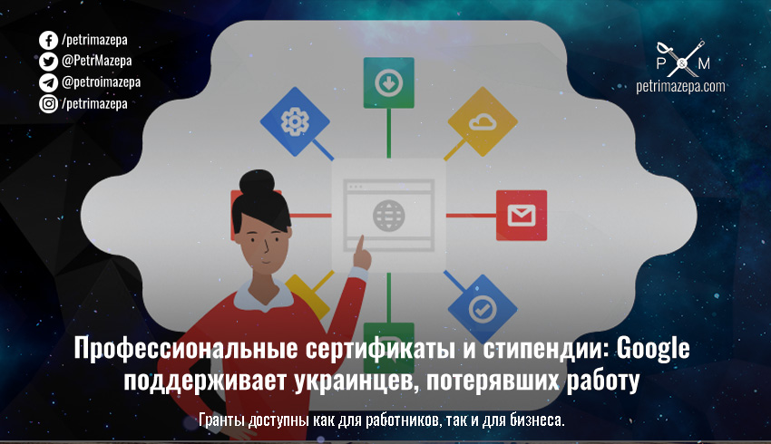 Компания Google объявила о новой программе поддержки украинцев в это непростое время — с сегодняшнего дня профессиональные сертификаты от Google доступны в том числе и на украинском языке, а для тех, кто потерял работу или рискует ее потерять, будут доступны и стипендии на обучение. Курсы доступны на платформе Coursera.