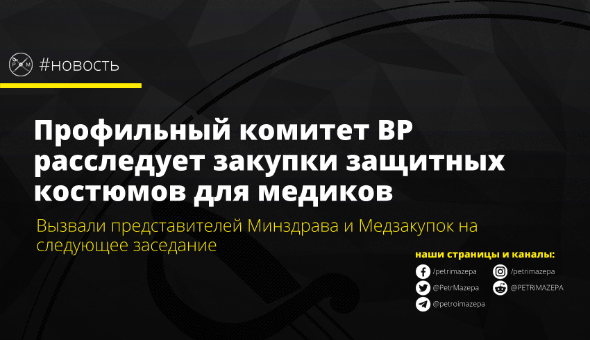 Профильный комитет ВР расследует закупки защитных костюмов для медиков