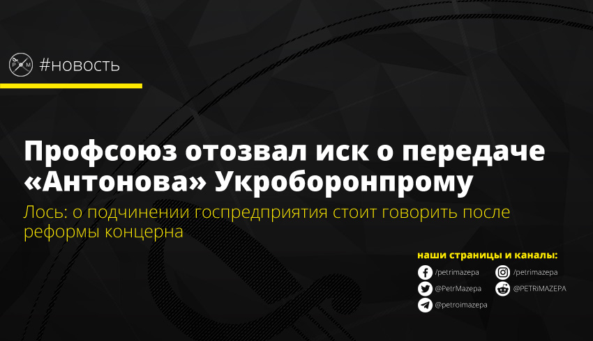 Профсоюз ГП «Антонов» отзывает из Окружного административного суда Киева иск об отмене постановления Кабинета министров Украины от 31.03.2015 №269, которым госпредприятие включено в состав госконцерна «Укроборонпром».