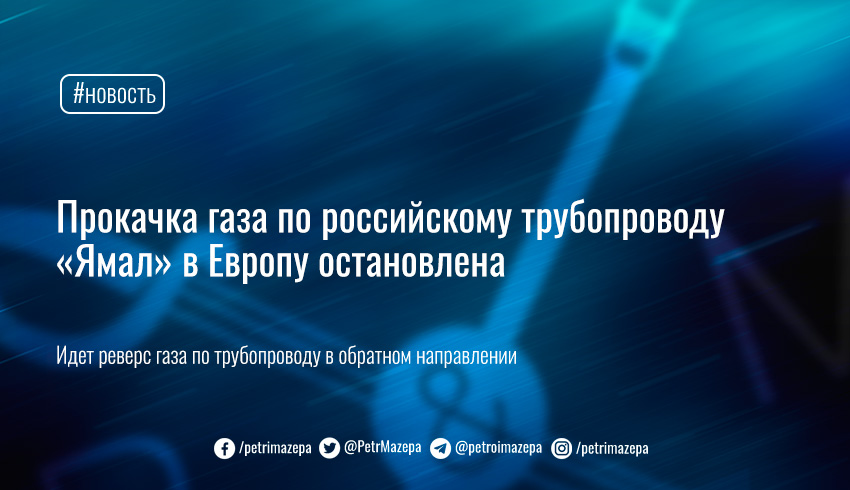 Прокачка газа по российскому трубопроводу «Ямал» в Европу остановлена