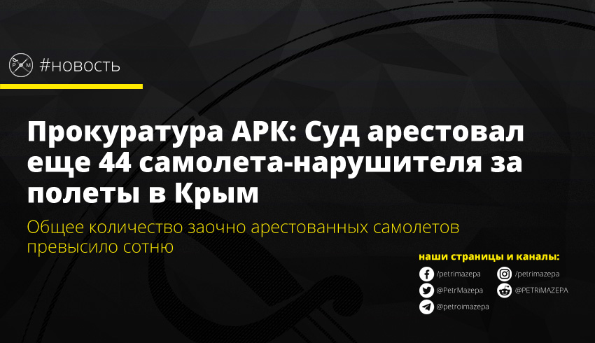 Прокуратура Автономной Республики Крым сообщает, что суд удовлетворил поданное прокурорами ходатайство об аресте очередной партии самолетов-нарушителей, которые совершают рейсы на оккупированный полуостров. Общее количество заочно арестованных самолетов составляет 109 экземпляров.