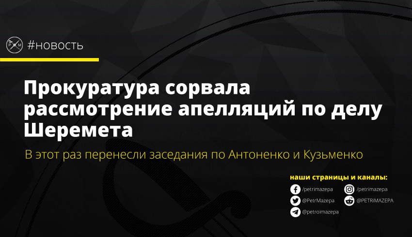 Прокуроры по делу об убийстве Павла Шеремета не пришли на рассмотрение апелляций, которые защитники Андрея Антоненко и Юлии Кузьменко подали на меру пресечения своих подзащитных. Но в этот раз удалось добиться, чтобы новое заседание назначили еще в 2019 году.
