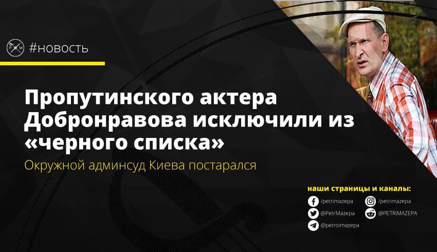 На основании решения Окружного административного суда города Киева (ОАСК) Минкульт исключил из перечня лиц, создающих угрозу нацбезопасности Украины, российского актера Федора Добронравова. В обновленном списке от 14 июня, обнародованном на сайте Минитерства культуры, его фамилии нет.