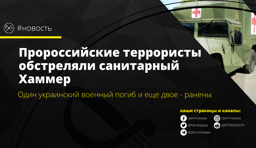 В штабе ООС сообщили, что сегодня днем пророссийские террористы подбили санитарный автомобиль «Хаммер» из ПТУР. В результате попадания один военнослужащий погиб на месте. Еще двое - получили ранения.