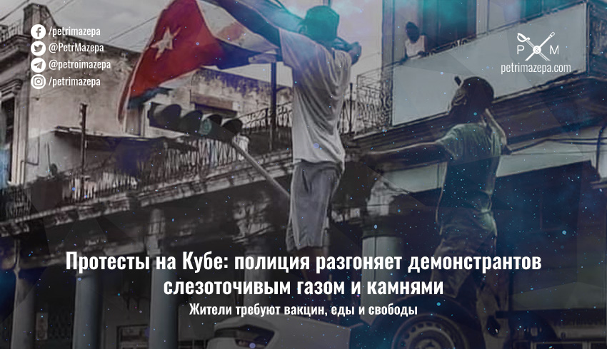Во многих городах Кубы проходят массовые акции протеста против действующей власти. Местные жители требуют прекратить волну смертности от COVID-19 и обеспечить кубинцев вакцинами. Также выступают против диктатуры и плохой экономической политики, приведшей к голоду. Полиция вывела на улицы спецтранспорт с пулеметами, но пока отвечает слезоточивым газом и камнями.