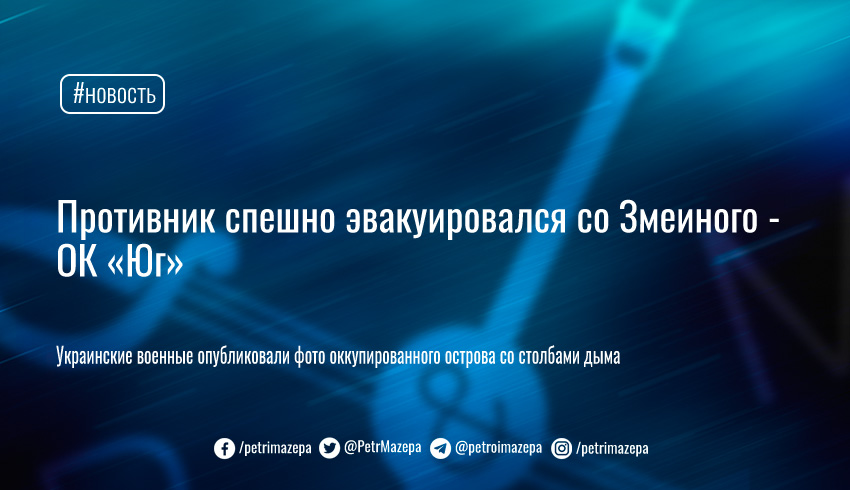 «В течение ночи, в результате успешно проведенного очередного этапа военной операции с нанесением огневых ударов нашими ракетными и артиллерийскими подразделениями по острову Змеиный, противник наспех эвакуировал остатки гарнизона двумя скоростными катерами и, вероятно, покинул остров», — пишет ОК «Юг».