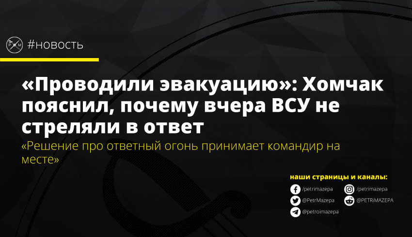 «Проводили эвакуацию»: Хомчак пояснил, почему вчера ВСУ не стреляли в ответ