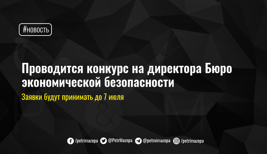 С 16 июня комиссия по проведению конкурса на должность директора Бюро экономической безопасности объявила отбор кандидатур. Документы конкурсная комиссия будет принимать с 9:00 16 июня до 20:00 7 июля 2021.