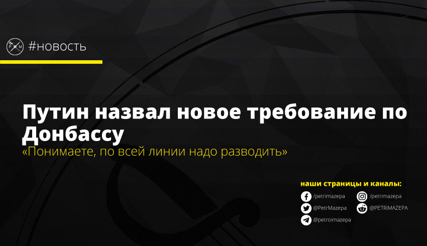 Президент страны-агрессора Владимир Путин озвучил еще одно требование по Донбассу – он хочет, чтобы разведение было проведено по всей линии соприкосновения.