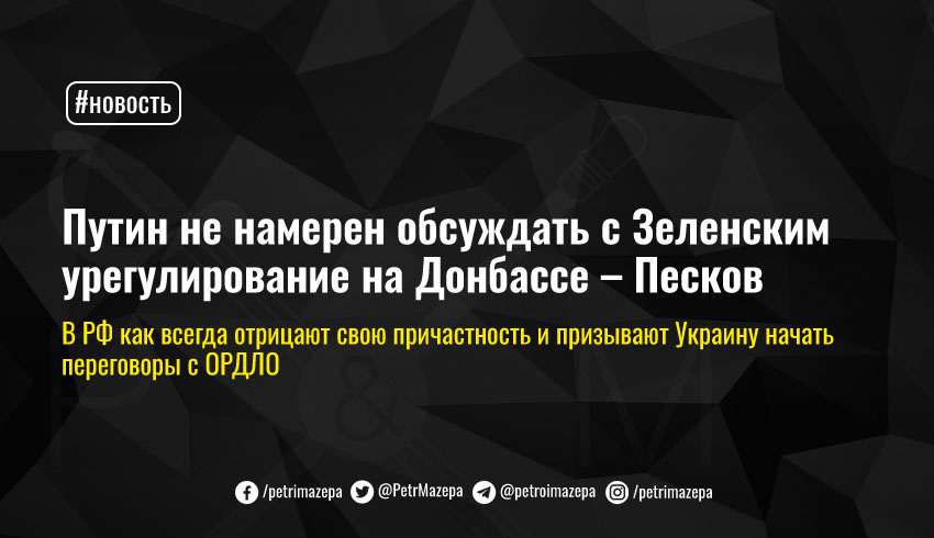 Путин не намерен обсуждать с Зеленским урегулирование на Донбассе – Песков