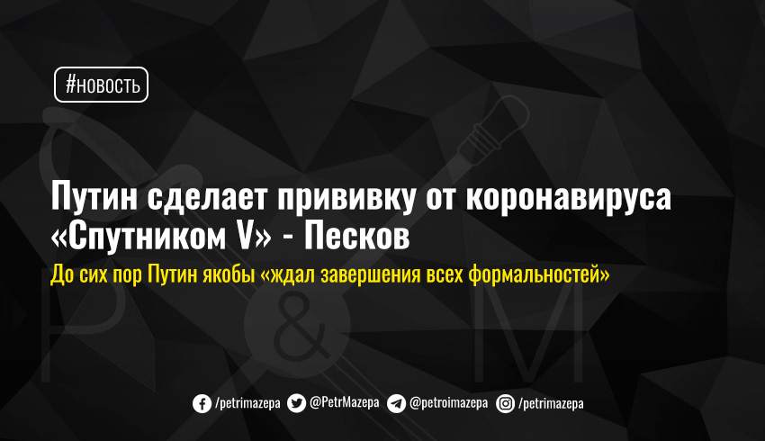 Путин сделает прививку от коронавируса «Спутником V» - Песков