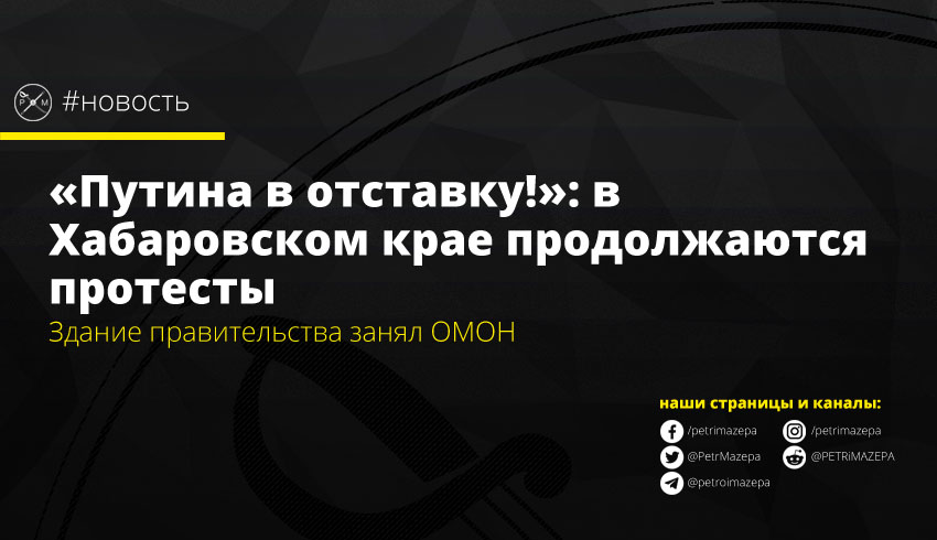 В Хабаровском крае третий день продолжаются протесты против федеральных властей РФ в поддержку губернатора Сергея Фургала. Жители страны-агрессора требуют свободы для недавно задержанного главы края, и скандируют в том числе слоган «Путина в отставку». Местные власти заявляют, что организаторы и участники могут быть привлечены к ответственности, а здание правительства тем временем занял ОМОН со щитами.