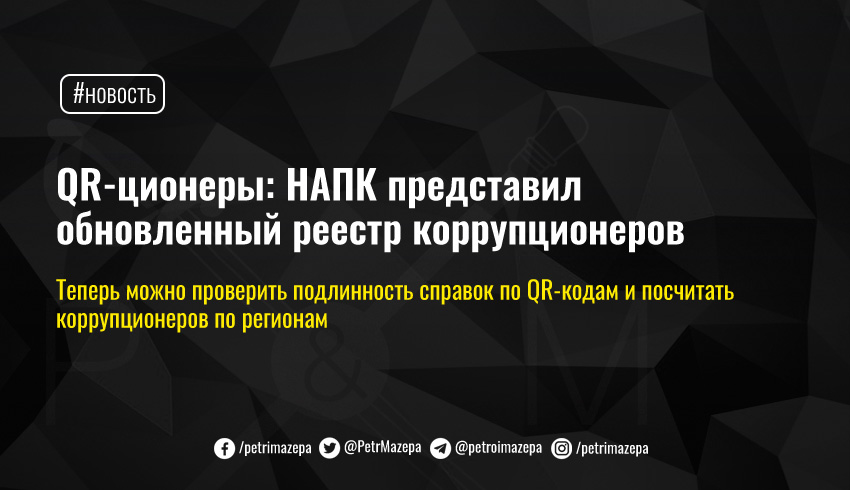 QR-ционеры: НАПК представил обновленный реестр коррупционеров