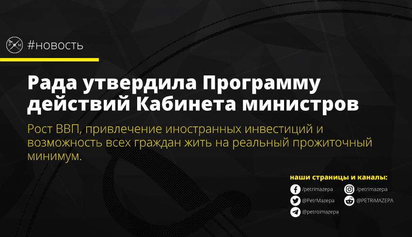 Верховная Рада Украины приняла Программу действий Кабинета министров, которая была презентована общественности несколькими днями ранее. За подобную инициативу проголосовало 236 народных депутатов.