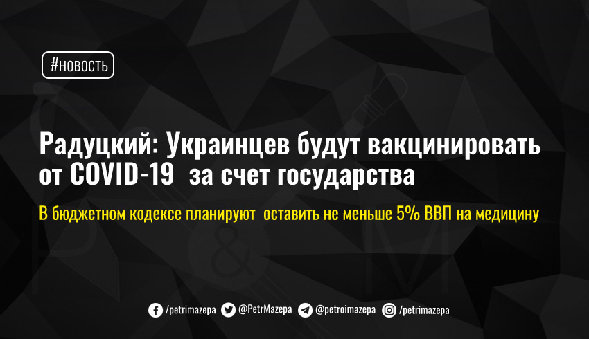 Радуцкий: Украинцев будут вакцинировать от COVID-19 за счет государства