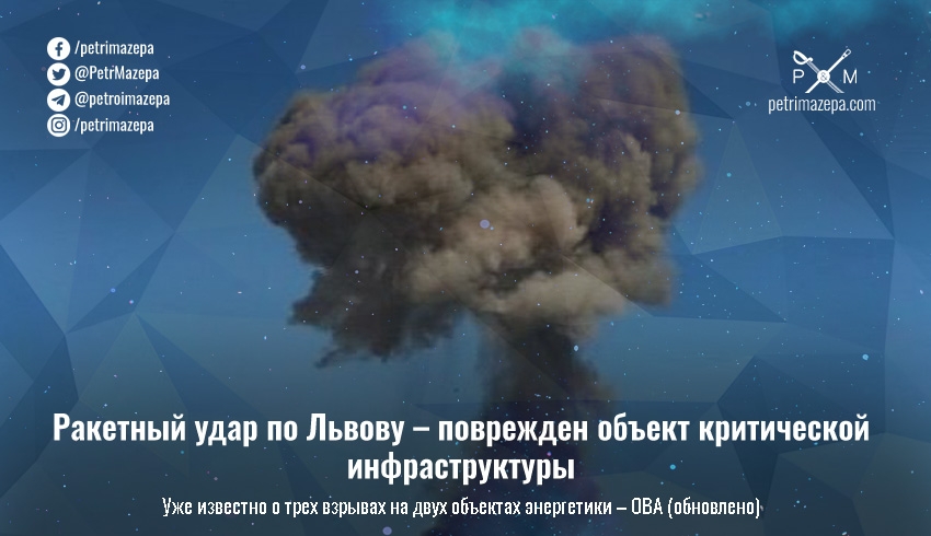Глава ОВА Максим Козицкий сообщил, что на данный момент известно о трех взрывах на двух объектах энергетики во Львовской области.