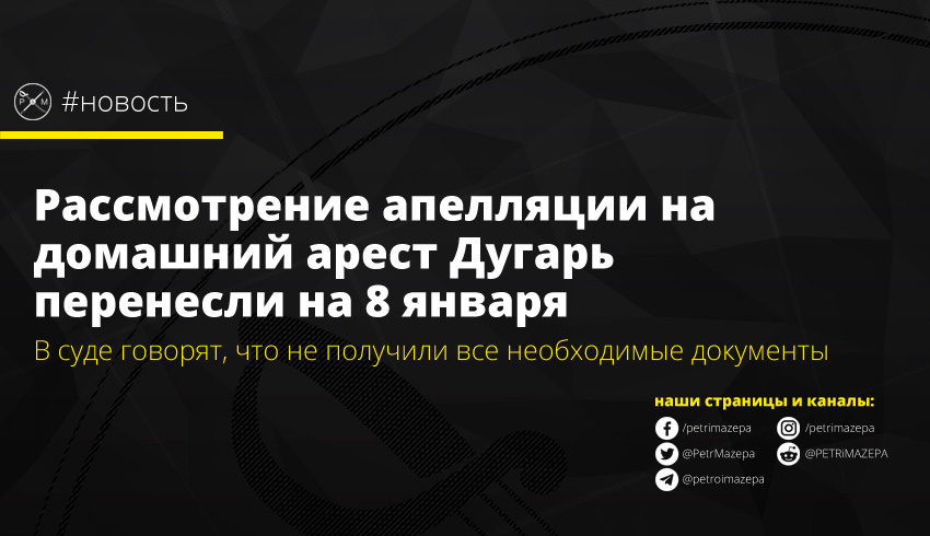Рассмотрение апелляции на домашний арест Дугарь перенесли на 8 января