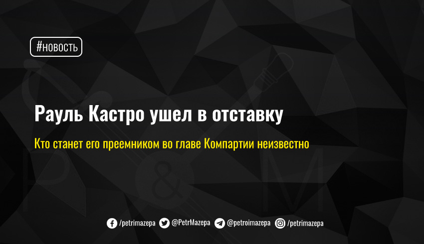 Первый секретарь Коммунистической партии Кубы Рауль Кастро объявил о своей отставке. Имя его преемника пока неизвестно.