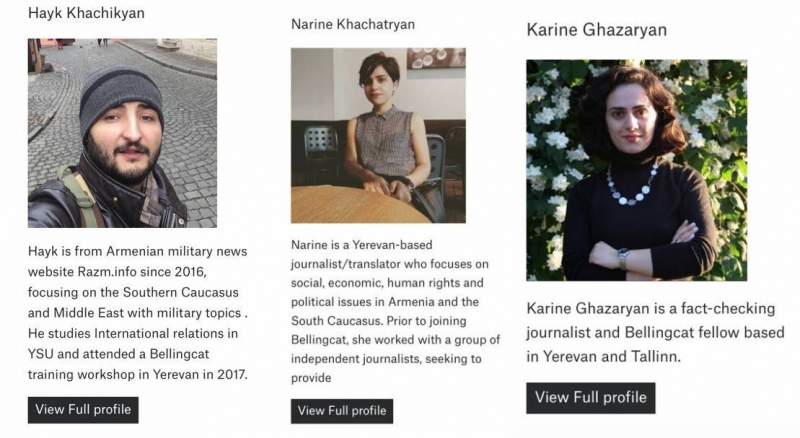 На сайте Bellingcat в тот же день был опубликован отчет Ника Уотерса. Не будем сейчас вдаваться в подробности того, сколько в Bellingcat работают азербайджанцев и армян. Но факт остаётся фактом.
